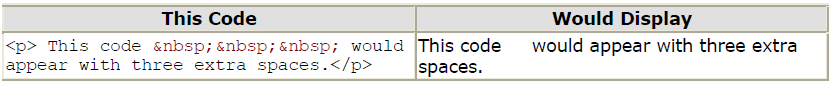 The most common character entity in HTML is the non-breaking space . Normally HTML will truncate spaces in your text. If you add 10 spaces in your text, HTML will remove 9 of them. To add spaces to your text, use the character entity.