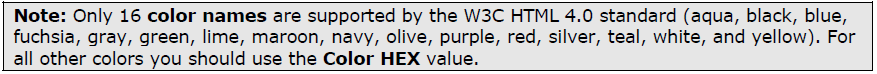 A collection of color names is supported by most browsers. To view a table of color names that are supported by most browsers visit this web page: http://profdevtrain.austincc.edu/html/ color_names.htm