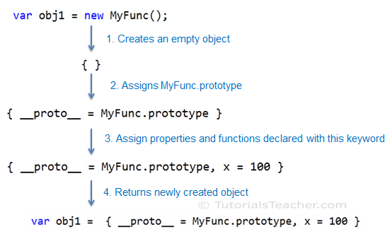 In the fourth and last step, it will return this newly created object. MyFunc does not include return statement but compiler will implicitly insert 'return this' at the end.