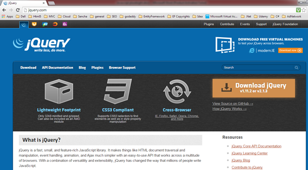 To download jQuery library, go to jquery.com and click on Download jQuery.