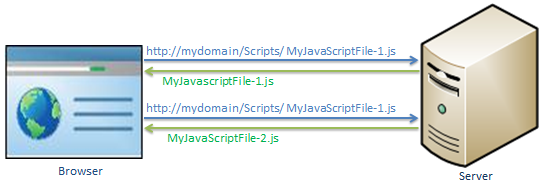In the above figure, browser sends two separate requests to load two different JavaScript file MyJavaScriptFile-1.js and MyJavaScriptFile-2.js.