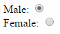 In the above example, we have created two radio button for the "Gender" property. The second parameter is a value which will be sent to the server, if respective radio button is checked. If the Male radio button is selected, then the string value "Male" will be assigned to a model property Gender and submitted to the server. The above example creates two radio buttons as shown below.
