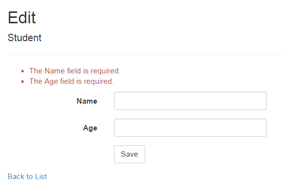 So now, the following Edit view will display error messages as a summary at the top. Please make sure that you don't have a ValidationMessageFor method for each of the fields.