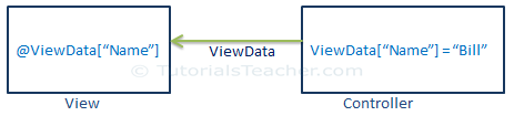 The following example demonstrates how to transfer data from controller to view using ViewData.