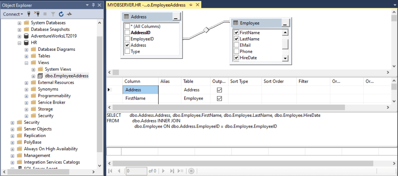 Views in SQL Server 2019 Step 4: In the diagram pane of the query designer, make modifications to the view by adding or deleting columns/elements from the View; Select additional columns from another table.