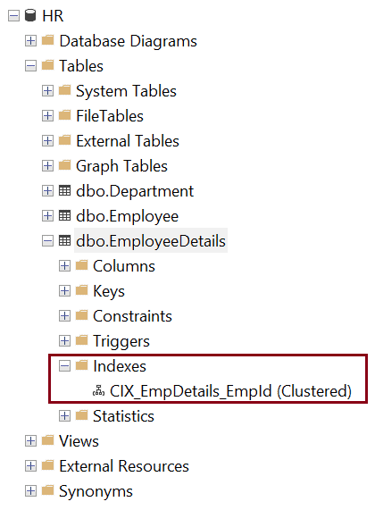 The following creates a clustered index on the EmployeeID column of the EmployeeDetails table.