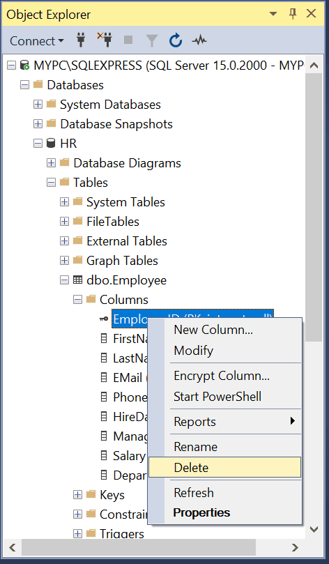 Delete Primary Key in SQL Server Delete Primary Key using Table Designer